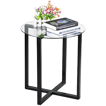 This end table is the perfect addition to your living area. Silver orchid helbling modern round side table. The end table has a glass tabletop and black, iron table base. Clear glass and black metal end table. Architectural with a strong silhouette.